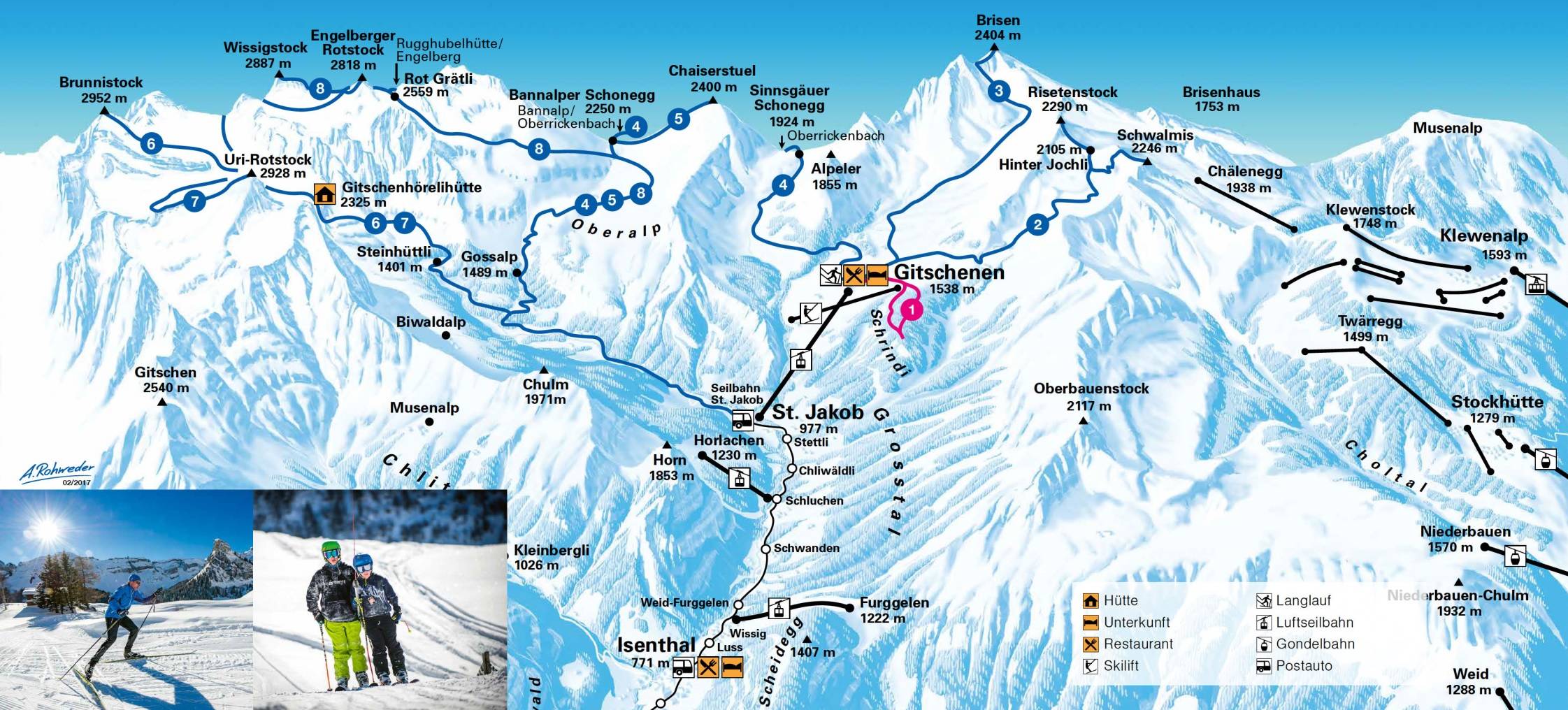 Gitschenen (0 km), Isenthal (4 km), St. Jakob (0,1 km) Plaatsen bij het skigebied