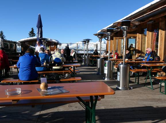 Op de Glungezer gaat het er wat rustiger aan toe. Je geniet van het einde van de skidag in de hutten van het skigebied of in de Larchnhittl onderaan het dalstation van de Glungezerbahn.