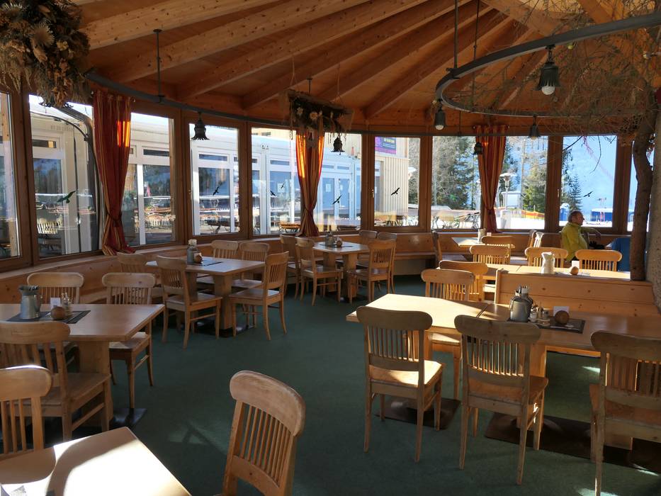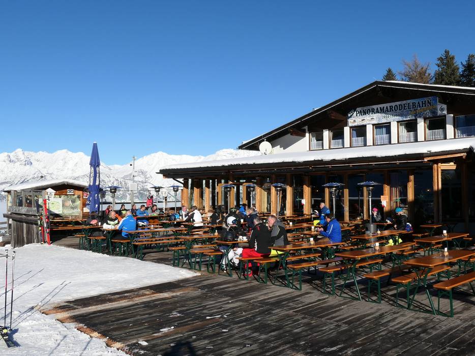 Met een prachtig uitzicht op de pistes kunt u zich laten bedienen op het grote zonneterras of in de gezellige herberg. Huisgemaakte gerechten, Tiroler specialiteiten en pizza's staan op het menu.