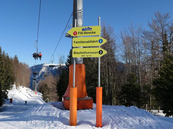 Oriëntatie (pistekaart, informatieborden, bewegwijzering piste) en veiligheid in het skigebied Götschen – Bischofswiesen