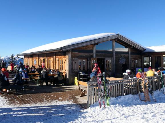 De Panorama Alm ligt op het mooiste uitkijkpunt van de Goldeck. De traditionele hutgerechten worden vers bereid.