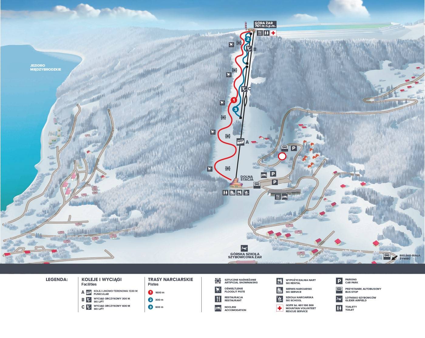 Pistekaart Góra Żar – Miedzybrodzie Zywieckie seizoen 2024/2025