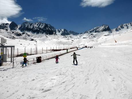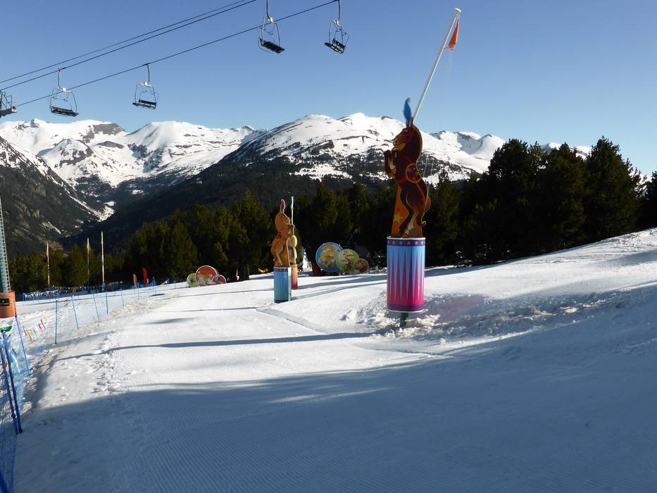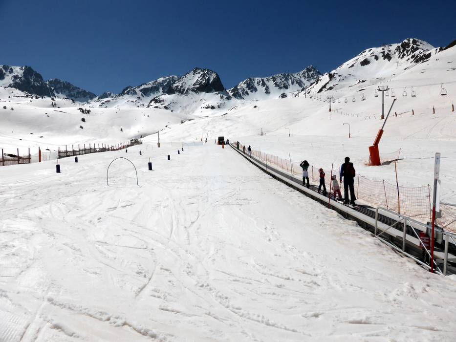 Het grote kinderland biedt meerdere transportbanden, sleepliften en voorzieningen voor kinderen. Het ligt iets boven Pas de la Casa in Abelletes.