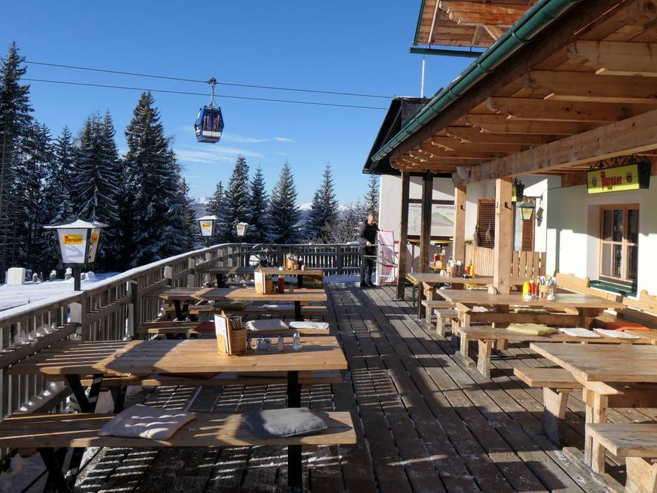 De Gruber Alm is erg populair. De houten achthoek is rustiek ingericht, rondom voorzien van glas en heeft ook een zonneterras. Je wordt verwend met pizza’s, gebraden vlees, schnitzel en spareribs.