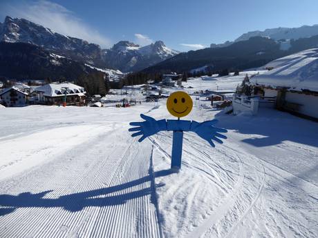 De skischool St. Ulrich verzorgt het Kinderland en het Mini Park Floc. Meerdere transportbanden, golvende banen en grappige figuren staan tot beschikking van de kleintjes. Een wedstrijdpiste en tipi-tenten maken het aanbod compleet.