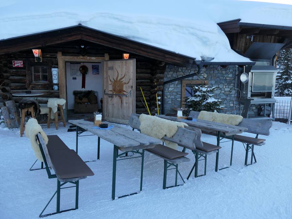 De gezellige Jagahütte biedt naast een stijlvolle ambiance ook een zonneterras.