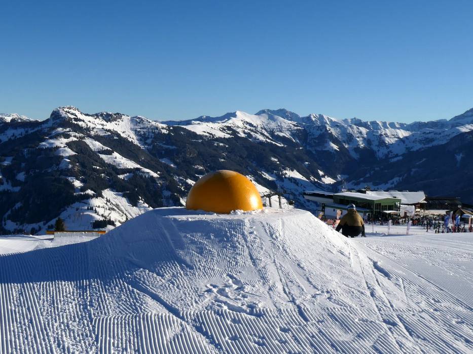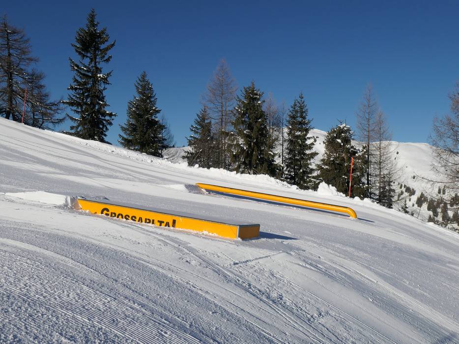 Het snowpark begint bij het bergstation van de Sonnenbahn. Het biedt kickers, boxen en tal van andere obstakels.