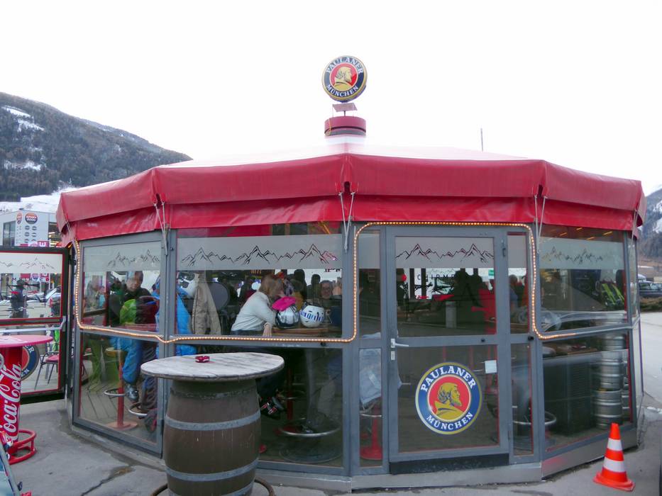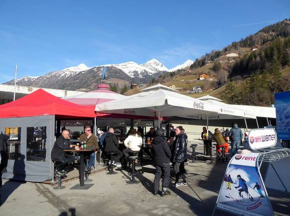 Aan het einde van een skidag wacht Sotla's Schirmbar voor de après-ski direct bij het dalstation in Matrei. Hier kun je perfect overstappen op de après-ski en feestvieren.