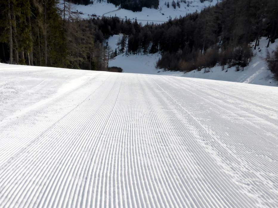 Zelfs de extreem steile pistes worden met de grootste zorg geprepareerd en deze verkeren tot in de avond nog steeds in topconditie.