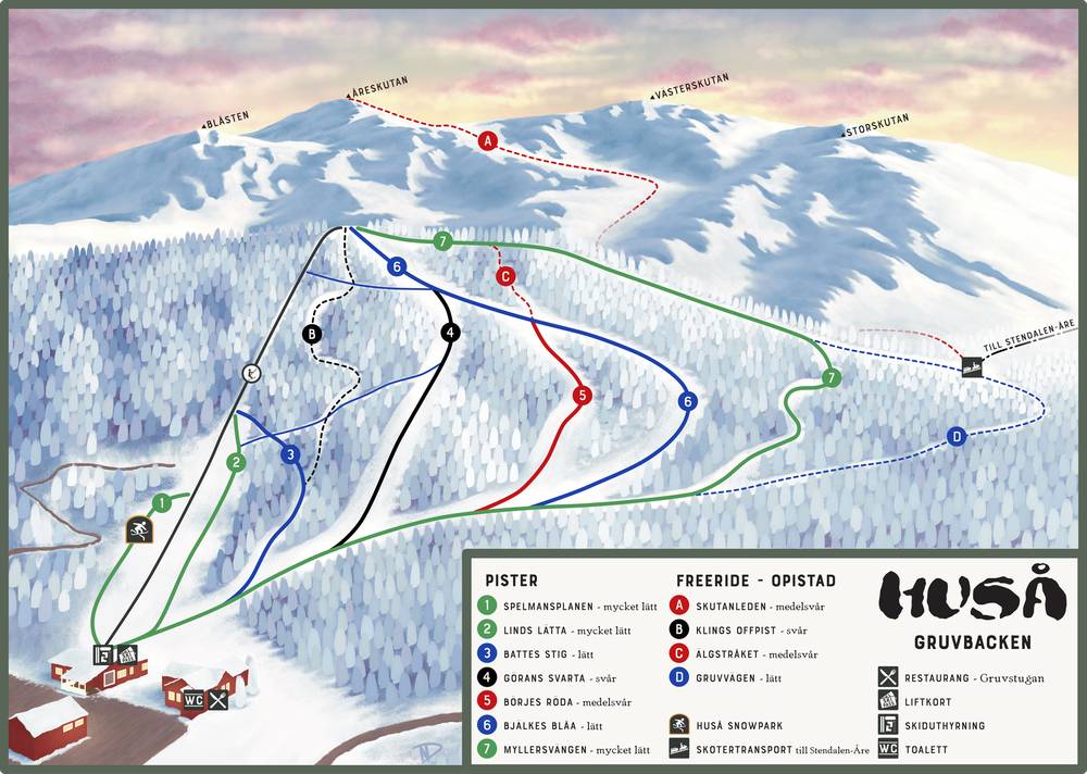 Huså (0,6 km), Åre (28 km), Järpen (26 km) Plaatsen bij het skigebied