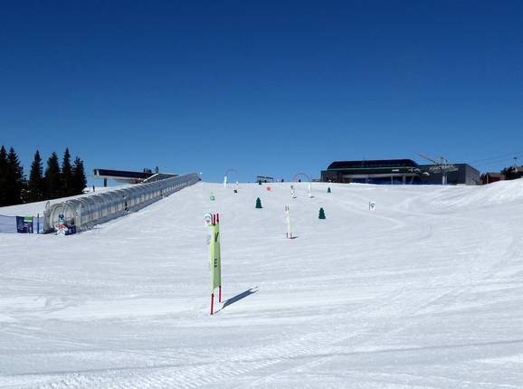 Direct bij het dalstation bevinden zich sleepliften en een transportband met eenvoudige pistes. Grappige figuren en een oefenparcours maken het aanbod compleet. Op Isa's podium treedt de mascotte Isa regelmatig op met muziek.