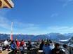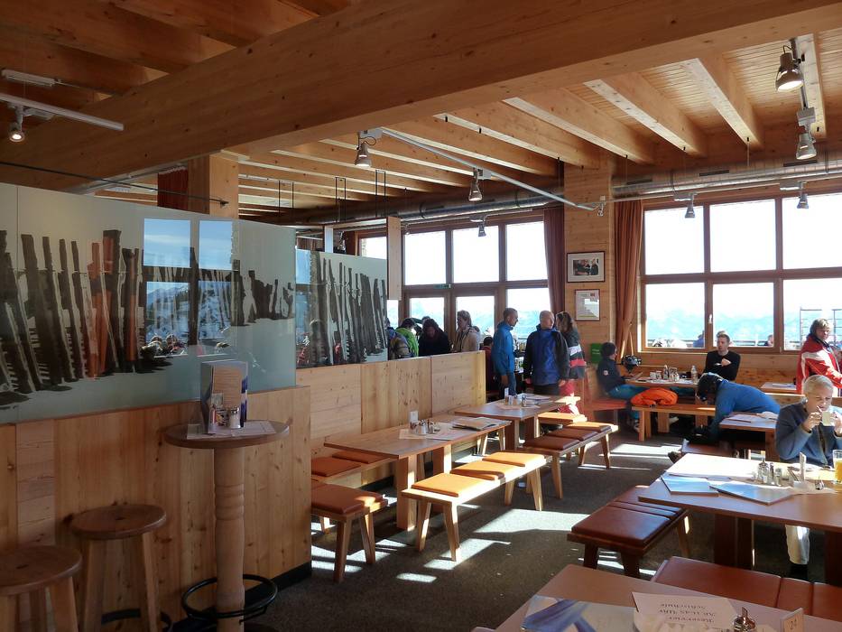 Het panoramarestaurant biedt een moderne sfeer met veel hout en grote panoramische ramen. Het prachtige uitzicht is ook te genieten op het ruime terras. Er zijn zowel typische berghutgerechten als regionale specialiteiten. Een deel wordt bediend, een ander deel is zelfbediening.