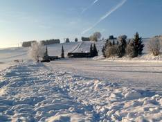 Zonsopgang bij het skigebied Halde Waarschuwingsbord naar het skigebied Halde Brede en zonnige afdalingen wachten op de…