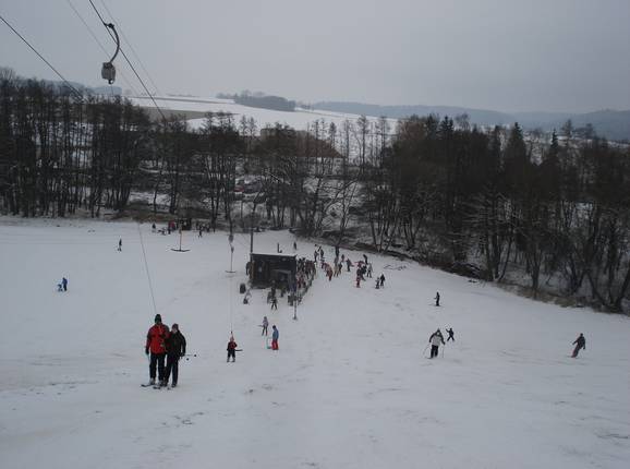 Uitzicht vanaf het bergstation Als er sneeuw ligt, is de lift goed bezocht.