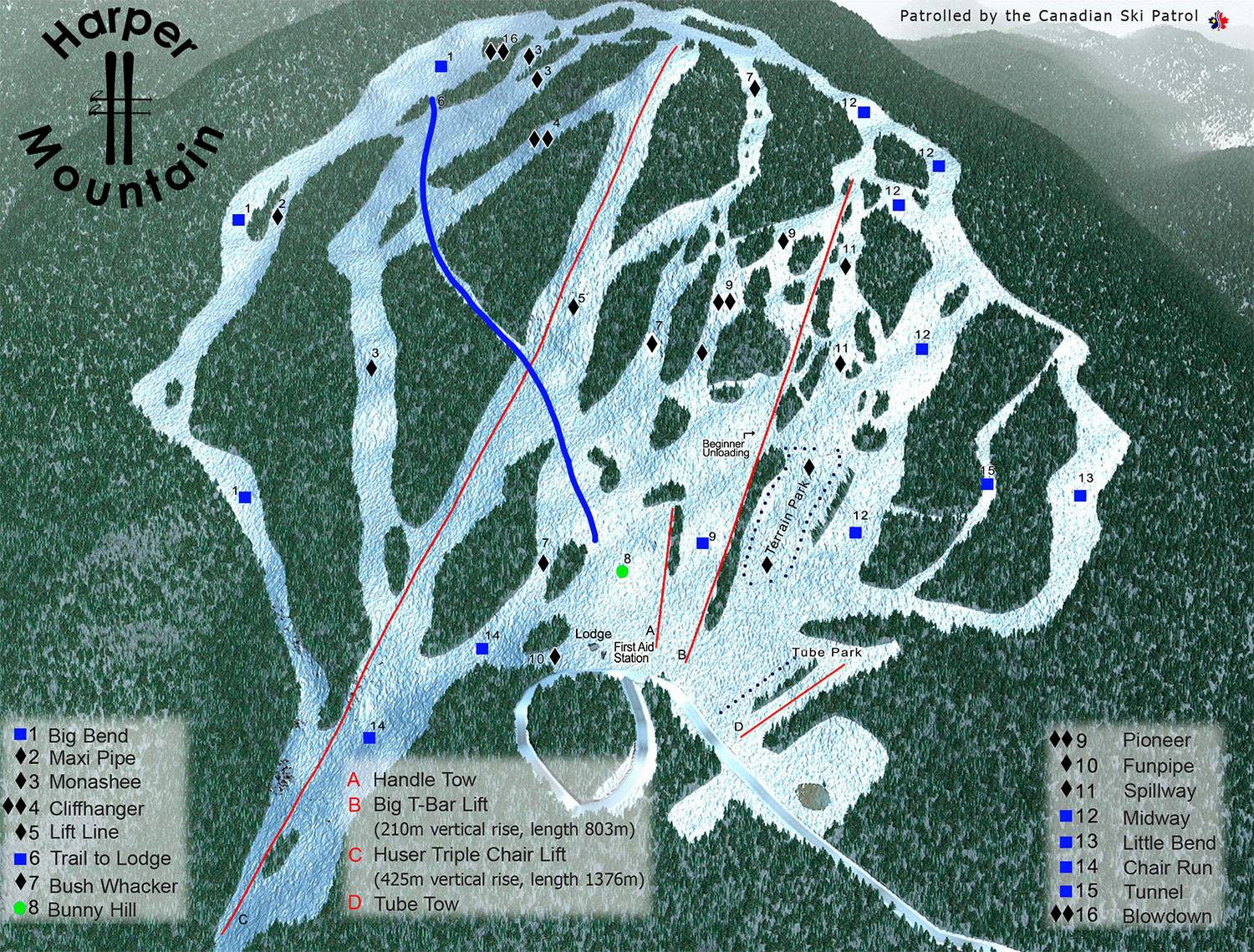 Pistekaart Harper Mountain seizoen 2025/2026