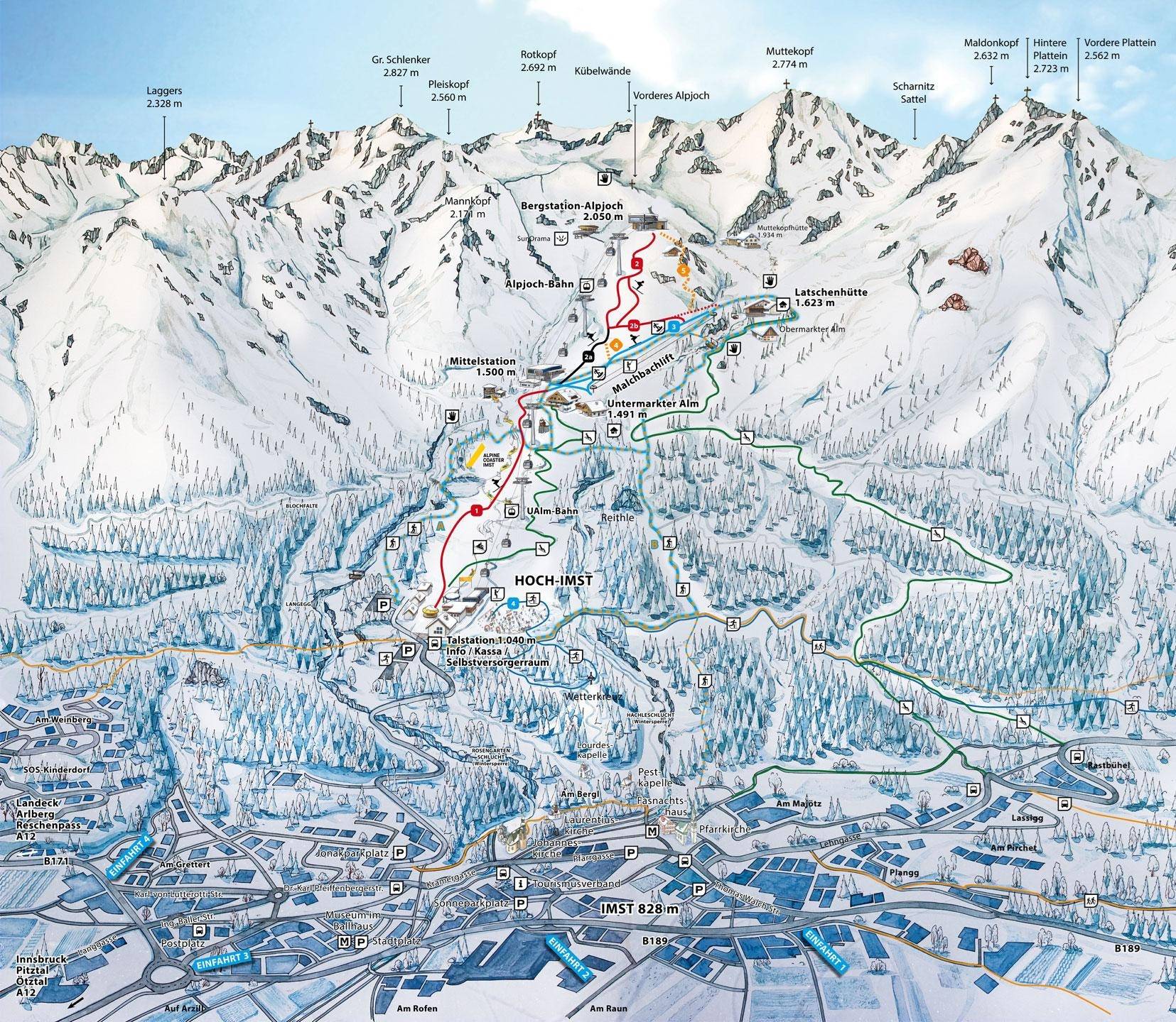 Pistekaart van het skigebied Hoch-Imst – Imst