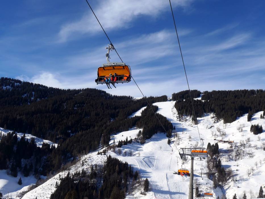 De Bürglalmbahn is uitgerust met oranje weerbeschermkappen. Deze lift vertrekt vanuit Dienten in de richting van de Wastlhöhe.