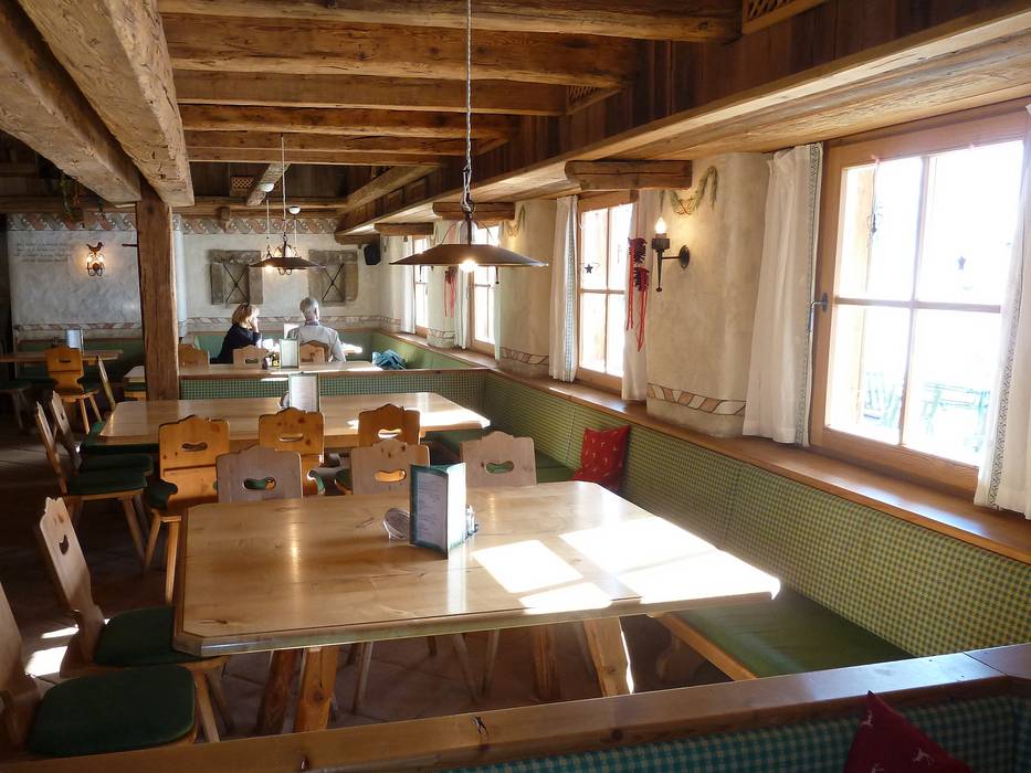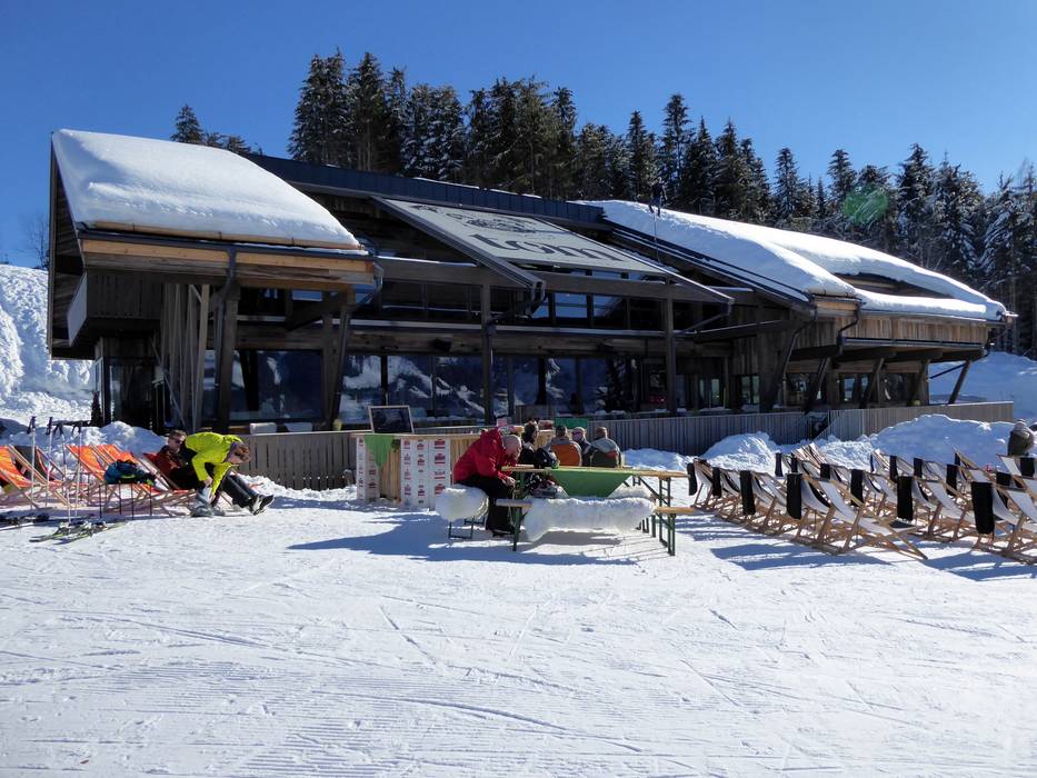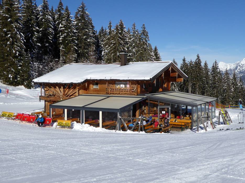 De tom Almhütte is heel bijzonder. Als mascotte dient een mopshond met de naam Choupette. Moderne architectuur met authentieke huttencharme en een spectaculair bergpanorama verrassen hier. Het menu biedt huttenklassiekers en internationale invloeden.