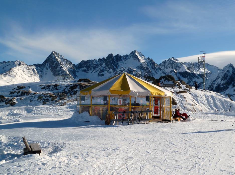 In de hoogstgelegen Schirmbar van het Pitztal heb je een prachtig uitzicht op 1001 toppen. Gezellige sfeer en goede muziek zijn gegarandeerd.