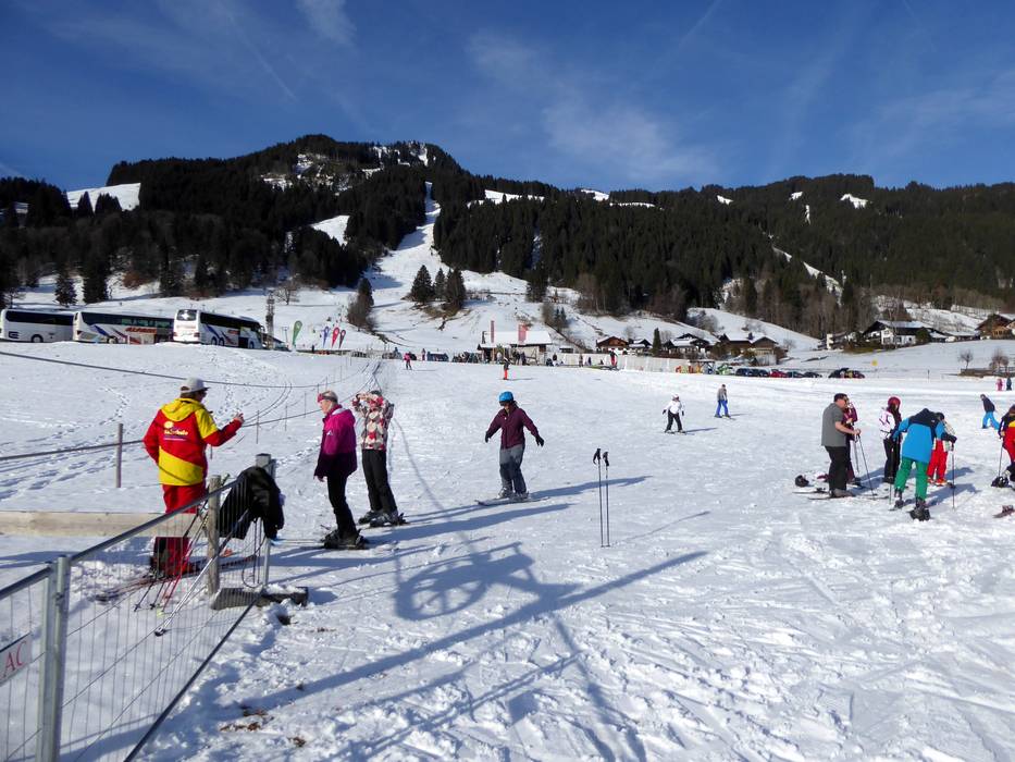 Beginners zijn in het dal bij de Dorflift en de Hörni-tellerlift uitstekend op hun plek. Hier zijn brede en makkelijke pistes. In Hörni's Kinderland kan men ook oefenen op transportbanden. Daarnaast zijn er kinderlanden van de skischolen met transportbanden en extra sleepliften beschikbaar. Boven in het skigebied van de Hörnerbahnen kunnen beginners op makkelijke pistes tussen de Bolsterlanger Horn en de Weiherkopf skiën. Makkelijke pistes lopen tot aan het dalstation van de Stuibeneckbahn. Er is geen makkelijke dalafdaling naar Bolsterlang. Beginners kunnen echter comfortabel vanaf het middenstation met de gondelbaan terug naar het dal gaan.