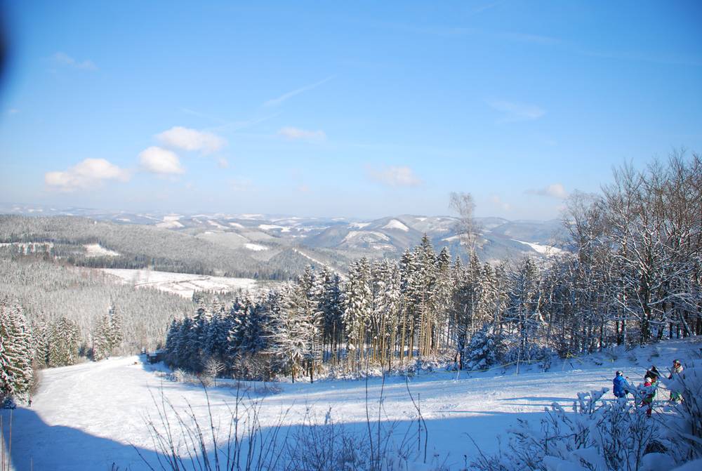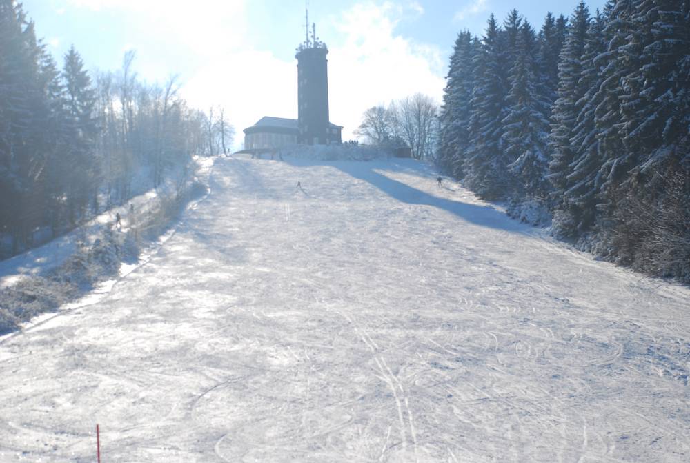 Uitzicht vanaf het panoramaterras op de bovenste… Heerlijk breed – piste bij de Hohen Bracht