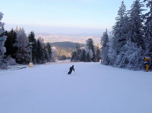 In het skigebied Hohenbogen lopen meerdere pistes door bosgordels. In het dalgedeelte zijn de afdalingen eenvoudig, hogerop variëren ze van middelzwaar tot deels zwaar. Dankzij de ruime verlichtingsinstallatie zijn alle pistes ook uitstekend verlicht voor nachtskiën. Op de top heb je een panoramisch uitzicht op de markante toppen van het Beierse Woud: de Arber, de Osser, de Kaitersberg en de Voithenberg.