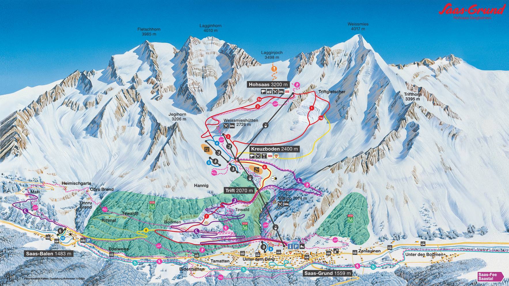 Saas-Grund (0,7 km), Saas-Balen (3,1 km) Plaatsen bij het skigebied