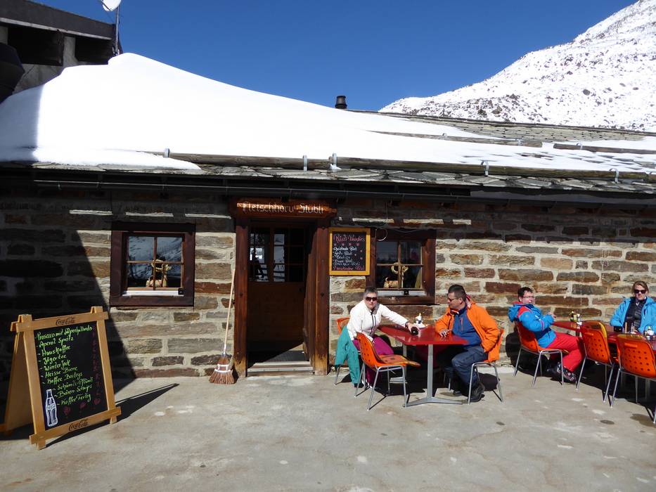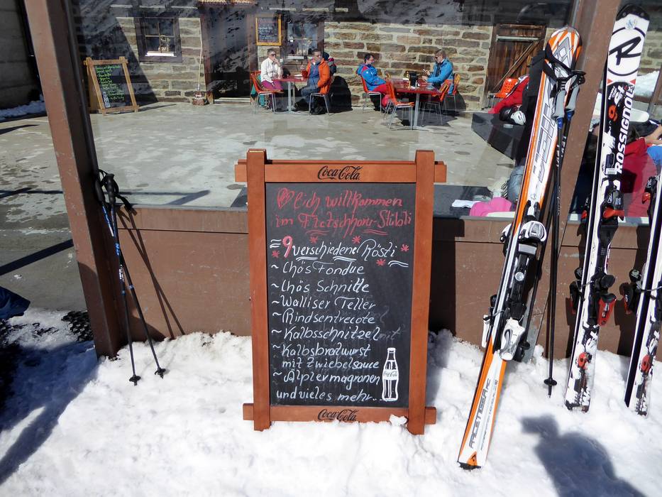 Het Fletschhoru Stübli biedt typische Walliser specialiteiten in een gezellige sfeer. Bij koude temperaturen wordt de open haard aangestoken. Een klein zonneterras maakt het aanbod compleet.