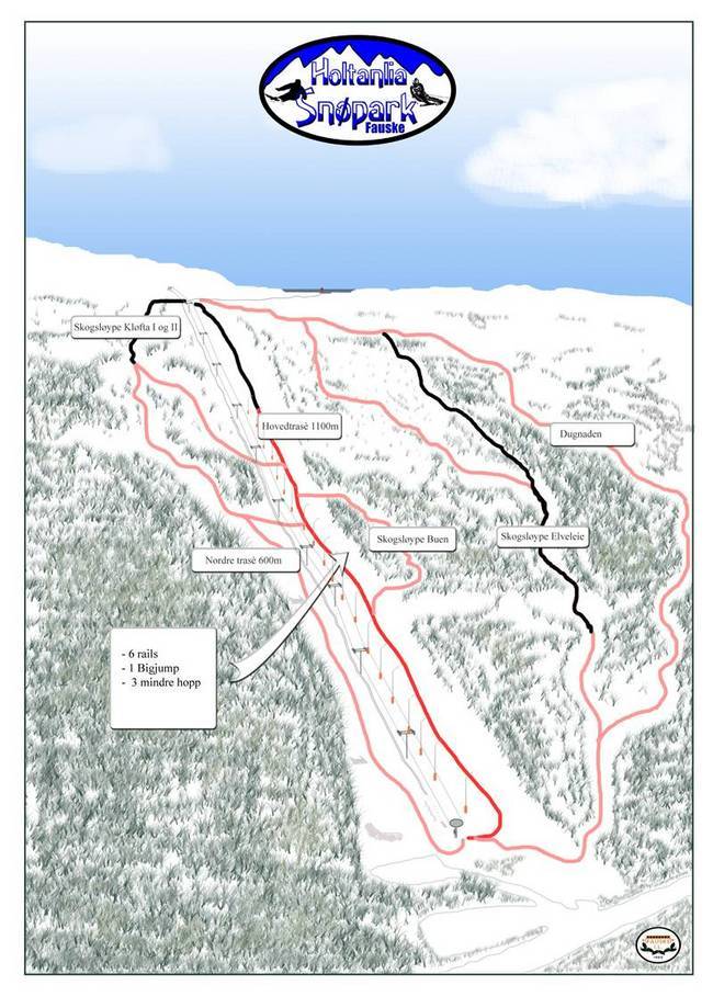 Kaart met route lift: Holtanlia skitrekket