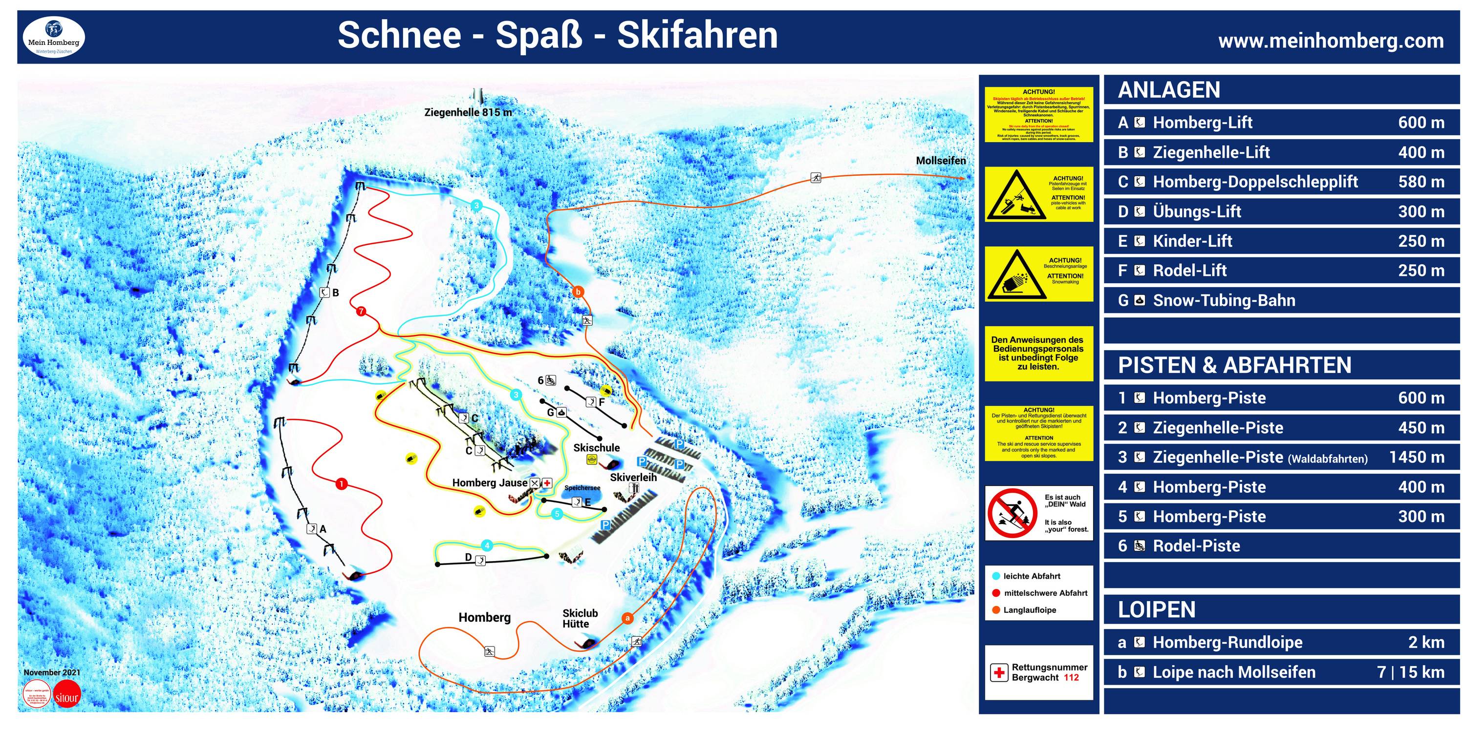 Pistekaart Homberg seizoen ---- !!! closed temporarily/vorübergehend außer Betrieb