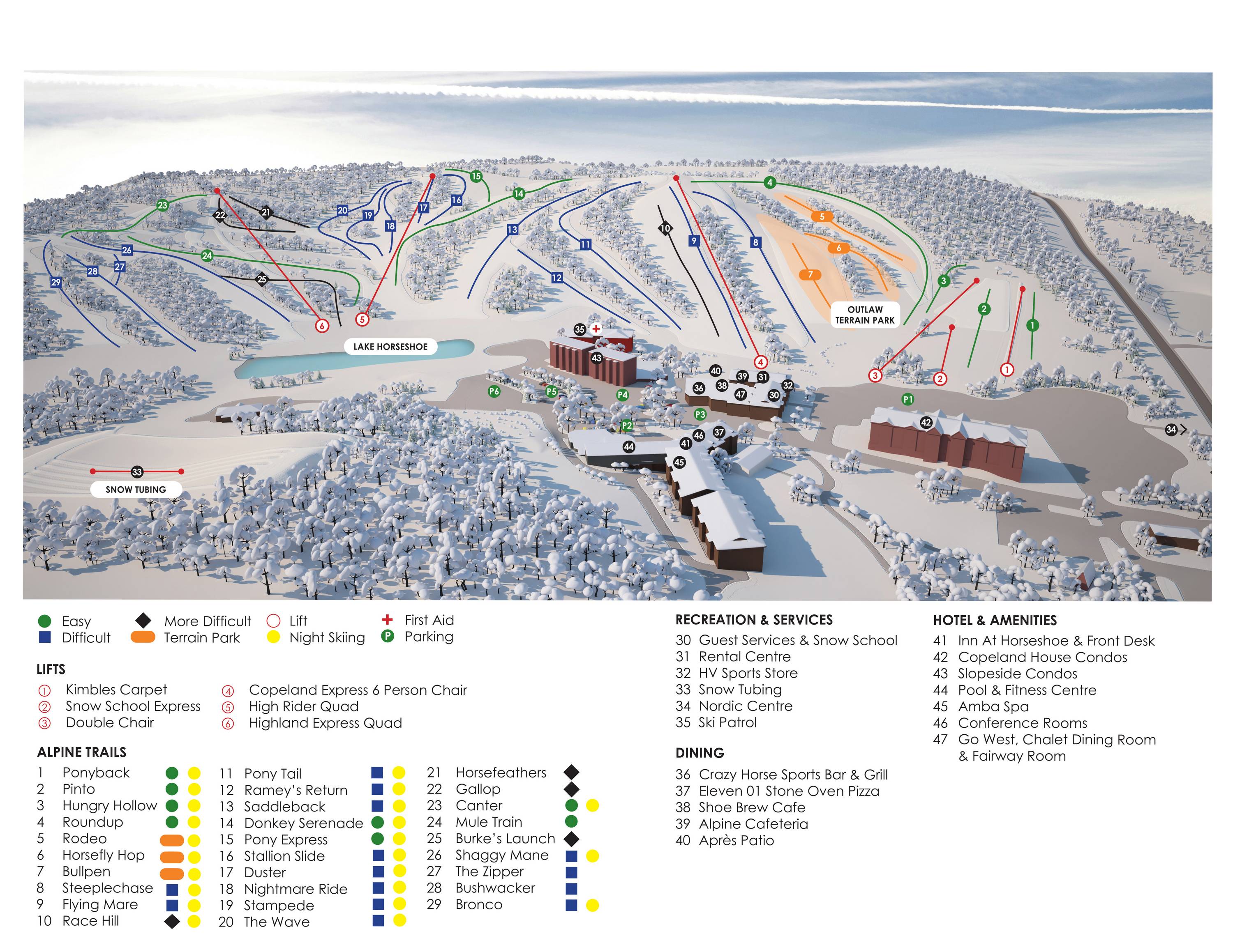Pistekaart Horseshoe Resort seizoen 2024/2025