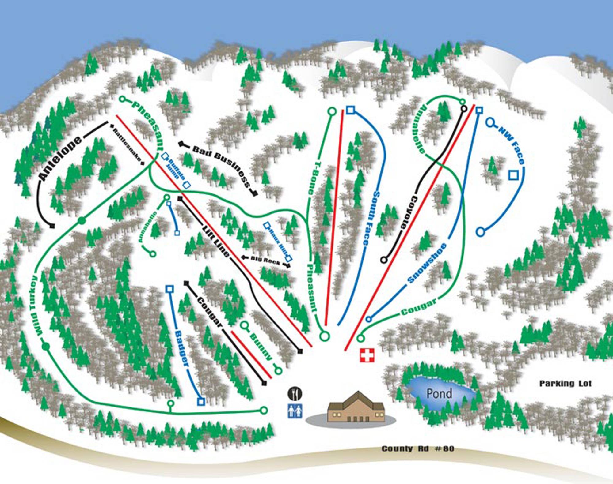 Pistekaart Huff Hills seizoen ---- !!! closed temporarily/vorübergehend außer Betrieb