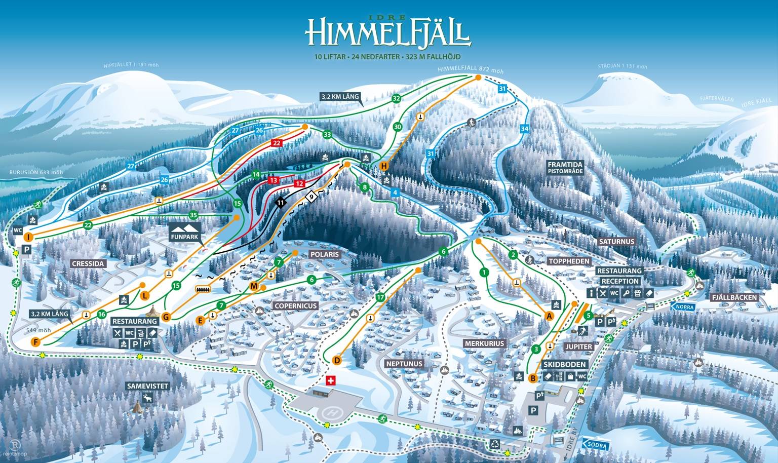 Pistekaart Idre Himmelfjäll seizoen 2024/2025
