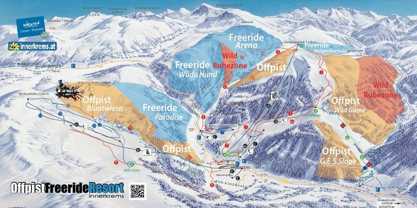 Pistekaart OffPist Freeride-Resort Innerkrems seizoen ---- !!! closed temporarily/vorübergehend außer Betrieb