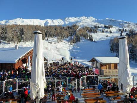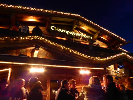 In de Champagnerhütte kun je aan het einde van de skidag uitstekend overgaan op après-ski. Hier wordt in een stijlvolle sfeer gefeest en proost je op een geslaagde skidag.