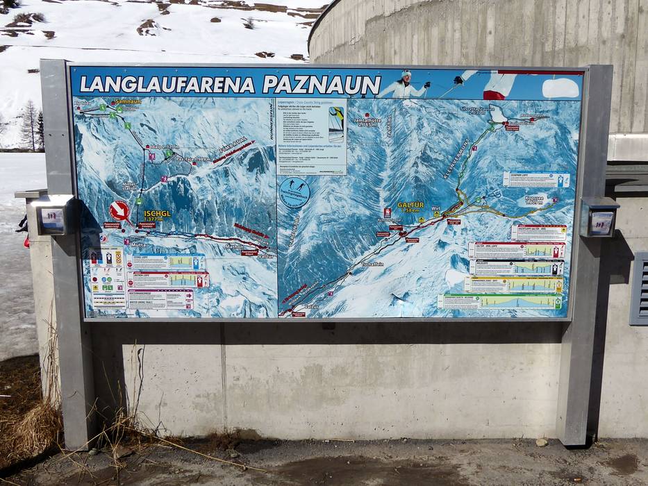 De langlaufloipes lopen van Ischgl tot aan Galtür. Je kunt zelfs tot aan de Bielerhöhe (2040 m) glijden op langlaufski’s. In Samnaun is er een loipe (4 km) van Laret via Plan, Ravaisch tot aan Samnaun Dorf. Sinds het seizoen 2017/18 kunnen er in het gebied van Ischgl 5 km loipes technisch besneeuwd worden.