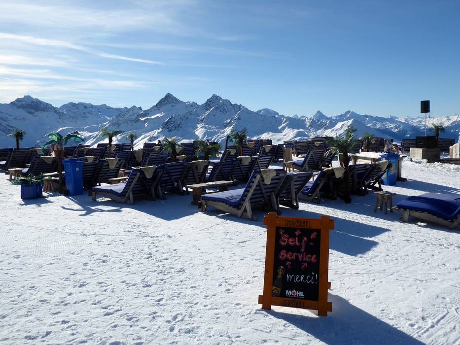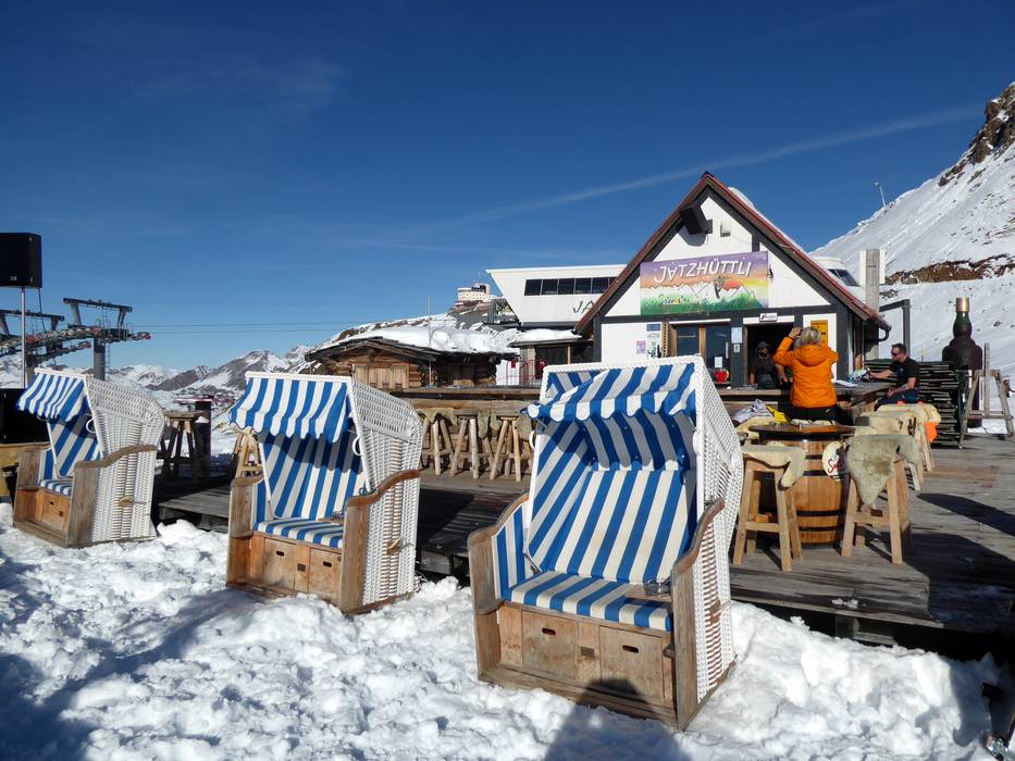 De Jatzhütte is een gezellige partyhut met een groot zonneterras. Onder palmbomen kun je ontspannen in ligstoelen met vachten en strandstoelen, of dansen op de beats van internationale dj’s. Daarnaast zijn er buiten whirlpools met uitzicht op de bergen. Wie er eenmaal is geweest, komt altijd terug.