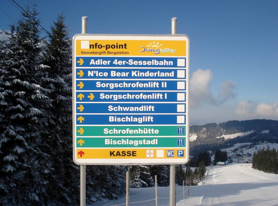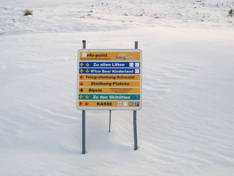 Oriëntatie (pistekaart, informatieborden, bewegwijzering piste) en veiligheid in het skigebied Jungholz