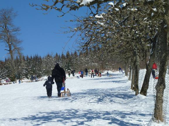 Aan de overkant van de heuvel is er ook een bijzonder mooie rodelbaan, die aan de straatzijde zelfs met een vanghek is beveiligd voor het geval iemand te snel gaat.