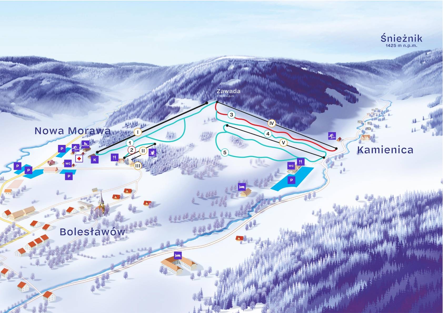 Pistekaart Kamienica/Bolesławów (Ski Family) seizoen 2024/2025