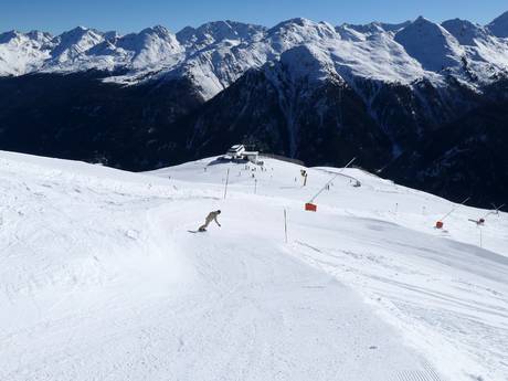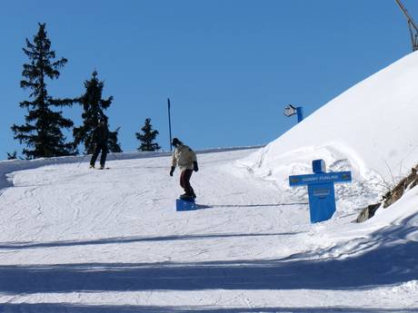 Het avonturenpark bij het bergstation van de 10-persoons gondelbaan Dias biedt verschillende snowparkelementen en plezier voor het hele gezin.