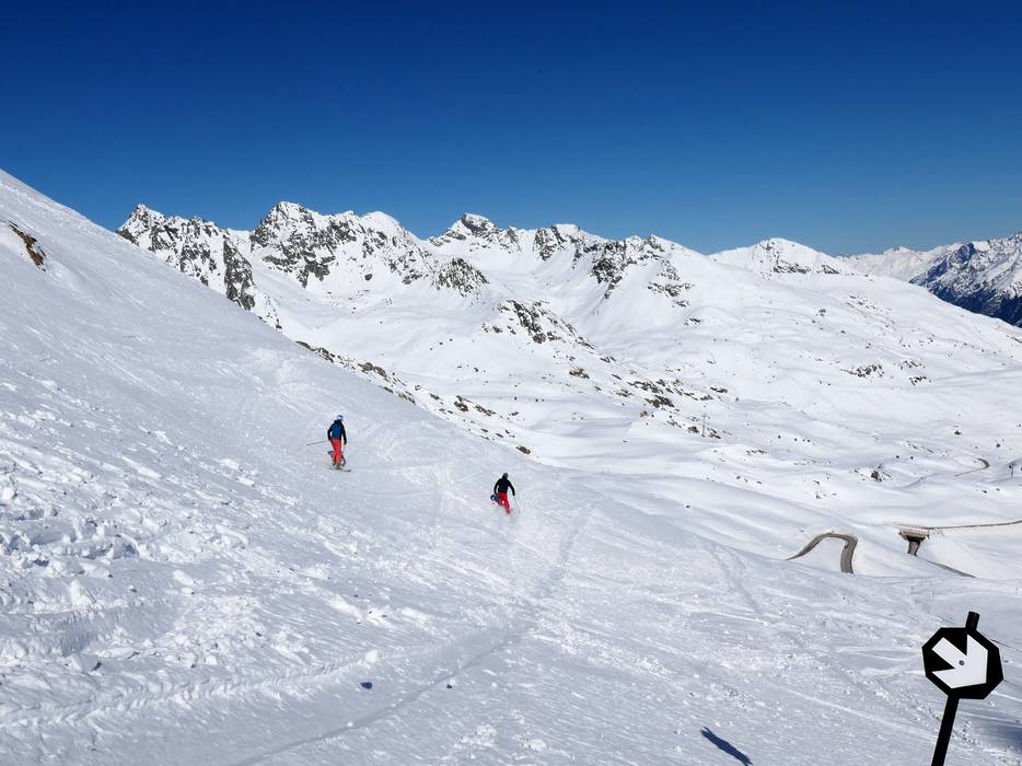 Op de Kaunertaler Gletscher vind je met de Black Ibex waarschijnlijk de steilste piste van Oostenrijk, met een hellingsgraad van 87,85%. De steilheid van de helling bij het Falginjoch is werkelijk indrukwekkend! Andere aantrekkelijke zwarte pistes starten bij het Karlesjoch en het Weißseejoch.