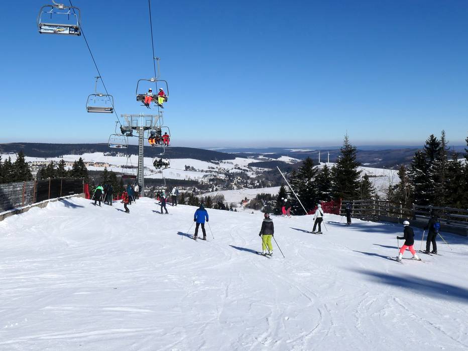 Start van de pistes bij Klínovec (Keilberg) Makkelijke pistes rond Boží Dar (Hranice) Start van de pistes bij Klínovec Piste Boží Dar Za Prahou II. Zwarte piste Neklid Karásek II. Dámská - 4-persoons hogesnelheidsstoeltjeslift… Prima Express - 4-persoons… CineStar Express - 4-persoons… Suzuki - 4-persoons vaste stoeltjeslift Vlek MiniAreál - Pannenkoeklift Štikovka - 3-persoons vaste stoeltjeslift Neklid-VL 500 - Sleeplift met… Talrijke sneeuwlansen in het skigebied Zeer goede pistepreparatie Bewegwijzering inclusief pistekaart Informatieborden bij de kassa Afvalscheiding in het skigebied Betrokken personeel bij de lift Après-ski bar CineStar (stoeltjeslift CineStar… Après-ski bar Jägermeister (stoeltjeslift Prima… Toegang voor kinderen tot de liften Gemakkelijke piste Dámská Gemakkelijke piste Dámská Moeilijke piste Neklid Karásek II. Moeilijke piste U Zabitého Snowpark-elementen in Hranice Snowpark-elementen in Hranice Snowpark CineStar (Neklid) Snowpark CineStar (Neklid) Foto Klínovec (Keilberg)