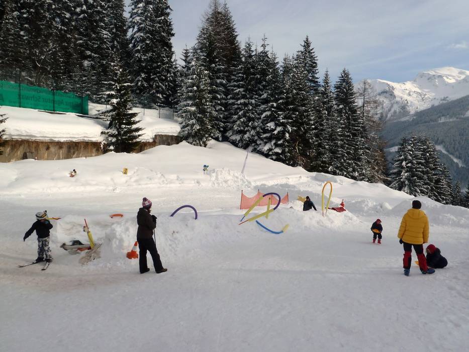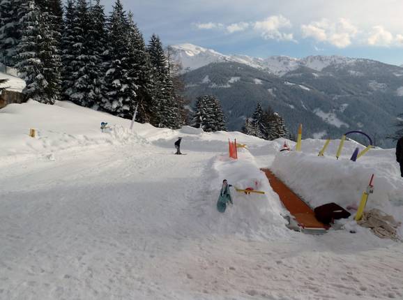 Het Kinderland biedt een transportband en je kunt hier bij het bergstation van de Sonnenlift, direct naast het Ferienhotel Frieden, uitstekend de eerste bochten oefenen.