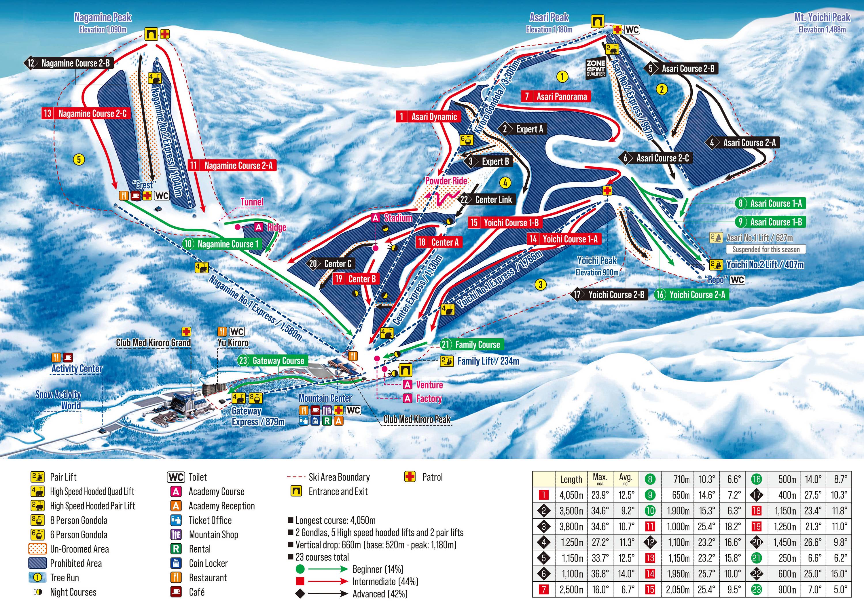 Pistekaart Kiroro Snow World seizoen 2024/2025