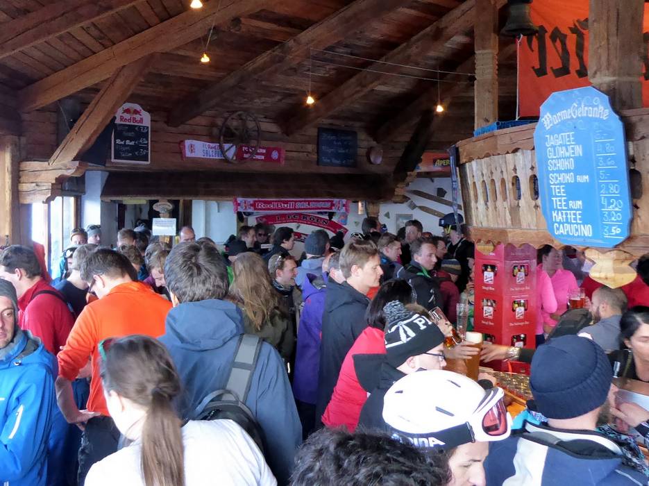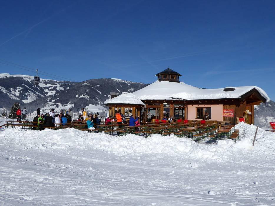 Voordat je met de gondelbaan (naar de Maiskogel of het dal) naar beneden gaat, kun je in de Häuslalm Schirmbar nog volop genieten van typische muziek en een gezellige sfeer. Iedereen komt hier langs op weg naar het dal.