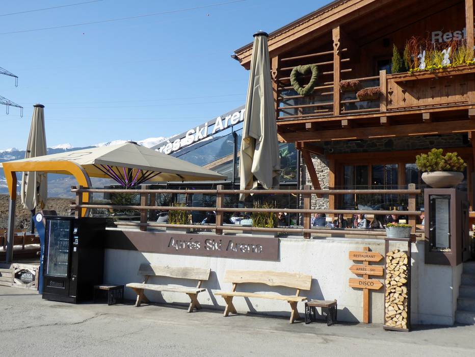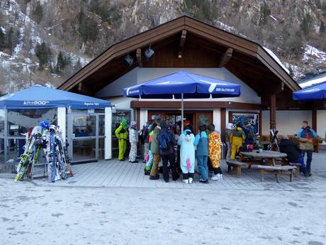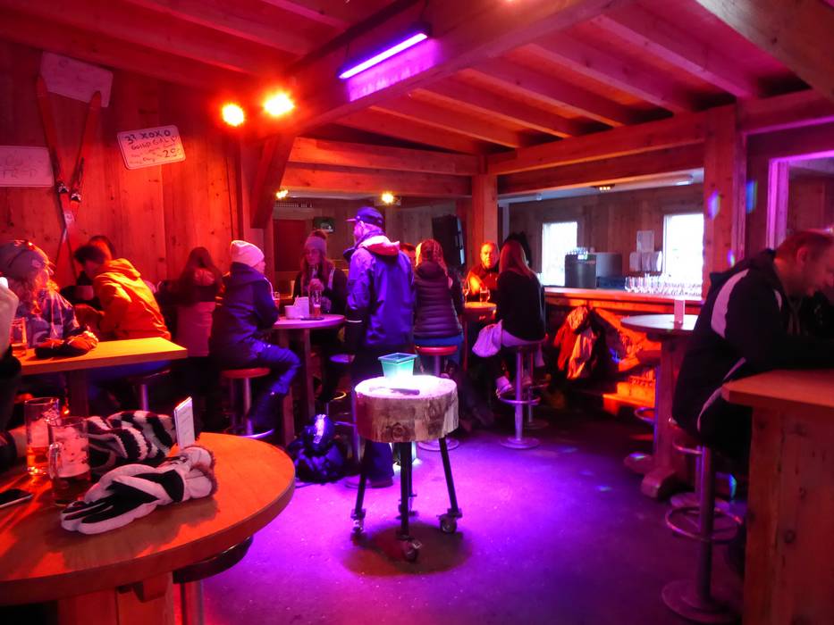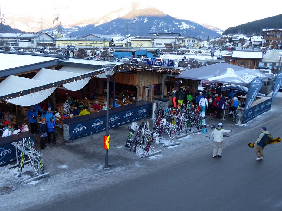 Hier komt iedereen langs die van het dalstation naar de bus of naar de parkeerplaats wil. Après-ski mag je hier letterlijk nemen – skiën hoeft daarna immers niet meer!