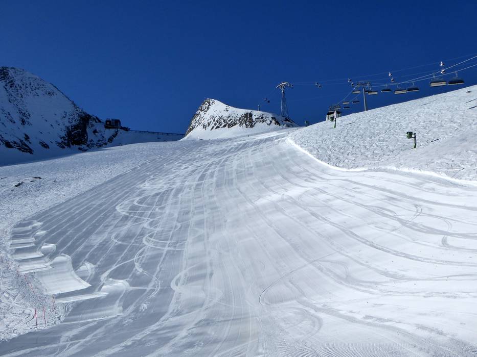 De afdalingen van de Kristallbahn hebben een mooie lengte en zijn dankzij de comfortabele lift zeer geschikt voor herhaalde afdalingen. - Maurergletscherafdaling 5b
