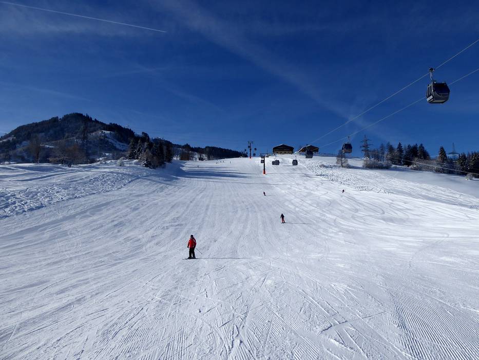 De mooie, brede piste begint bij de Almbahn op de Maiskogel.