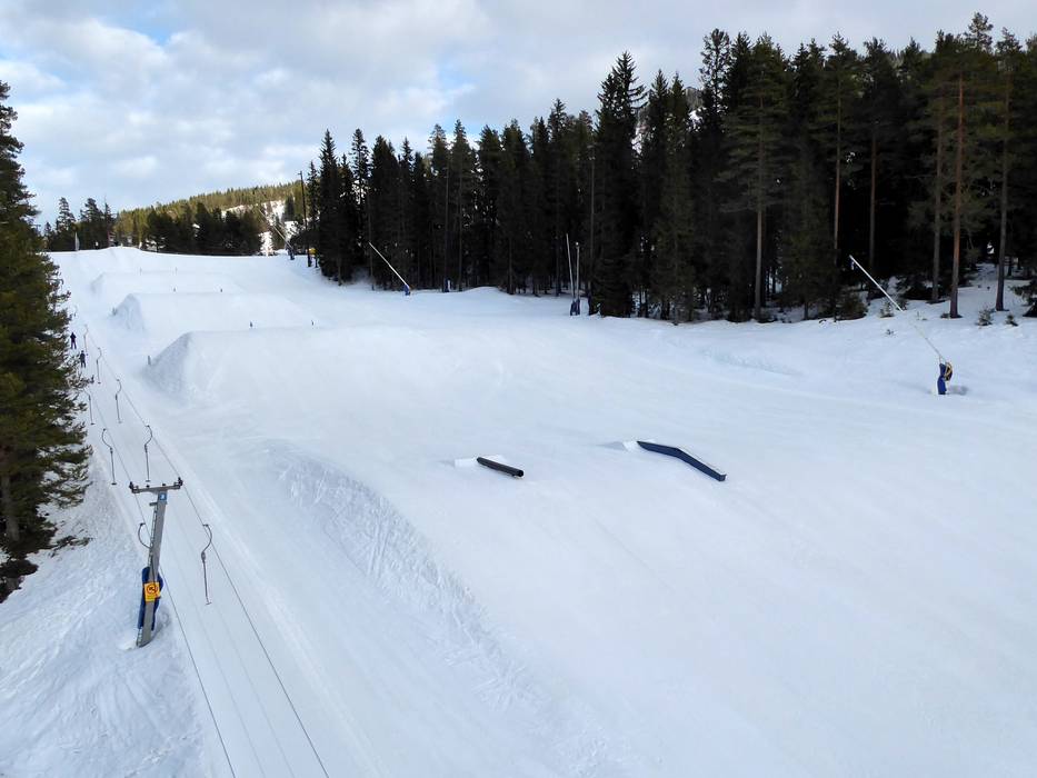 Kläppen biedt een van de grootste snowparks van Zweden en is daarom erg populair bij freestylers. De Kläppen Snowpark bestaat uit drie afzonderlijke snowparks die verspreid liggen over het skigebied. Hier blijven geen wensen onvervuld.